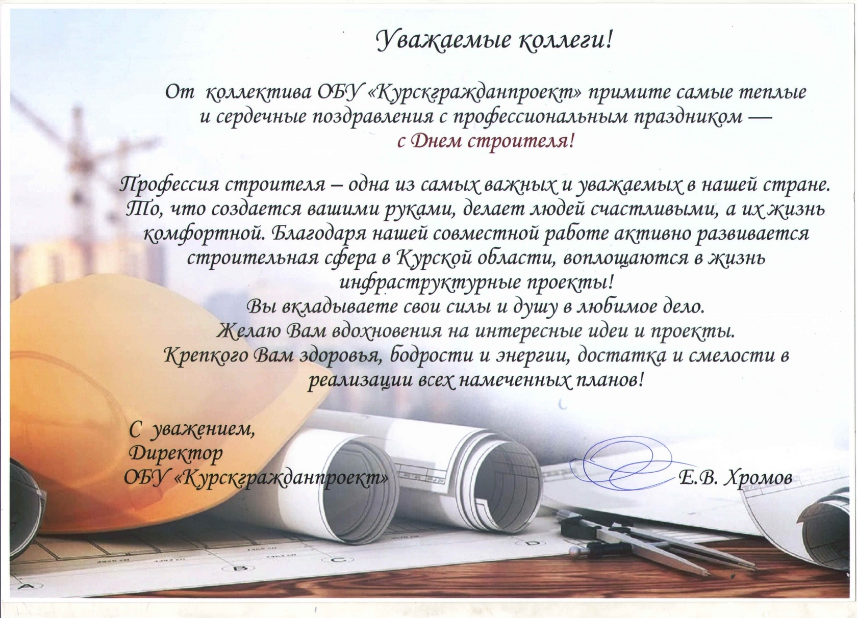 Поздравление от коллектива ОБУ "Курскгражданпроект"